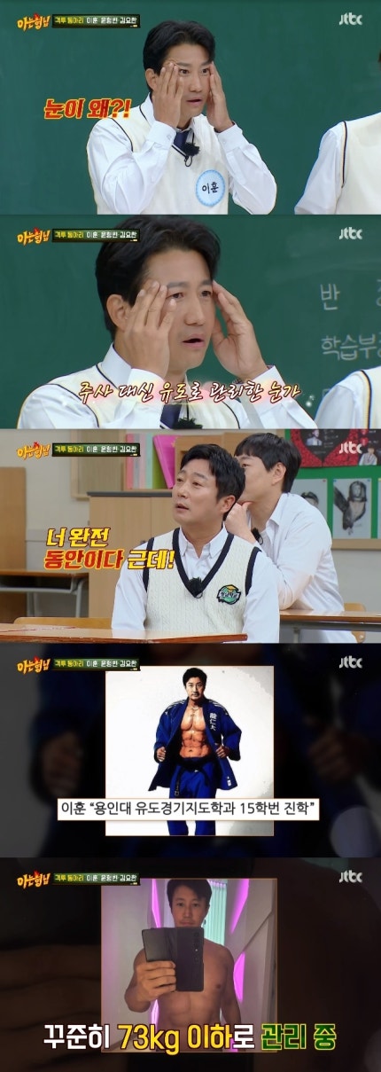 Lee Hun don't have that idea behind the campus in Yongin, in 2015, guided Guidance, Gyeonggi-do, Korea, admitted to '- 73 kilograms' geubiramyeo " normally once - then about eighty kilograms '- 73 kilograms' is difficult to fit as a Class.The management on ordinary days - 73 kg, to maintain an amazing spotlight.(photo = jtbc 'My brother to know' capture).