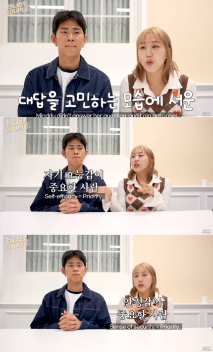 " 'Enjoy Shopping couple' is imnara not upload without notice for so long, six years, the first time.(we) is the reason really big fight.It looks a lot of things to fight as a position to do it we're living together for the first time.Too sensitive and stuck together to solve a big fight and now says it's not quite himself, Fuller, have been honest with each other.So (fighting) deeper than ever, it's okay to open up. The "We had a really honest.", and imnara sonminsu said called self-esteem of various kinds.Minsu was his efficacy is an important person said.Sonminsu was described as "If you have difficult new challenges and harder to achieve through and prove the existence of me and my style to restore self-esteem.".