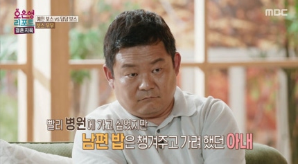 My wife is her husband's usual answer is I don't eat him, he says many." Let's go out for a meal with family during the Chuseok is my wife.My father was to find a restaurant, try to call him.Everyone's waiting, but I had no other answerAfter a while that I ask how he, then come back to attracted attention. "My wife is alone in the end everything alone and expressed frustration should be.