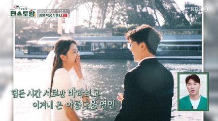 박수홍은 웨딩 사진을 통해 미모의 아내를 처음으로 공개했다.Park Soo-hong revealed his beautiful wife for the first time through a wedding photo. 부부의 똑닮은 미소가 절로 미소 짓게 했다.The couple's identical smile made them smile. 손헌수는 프랑스 파리 에펠탑을 배경으로 찍은 사진을 놓고 "영화다"라며 극찬했다.Son Heon-soo praised the photo taken against the backdrop of the Eiffel Tower in Paris, France, saying it was a movie.