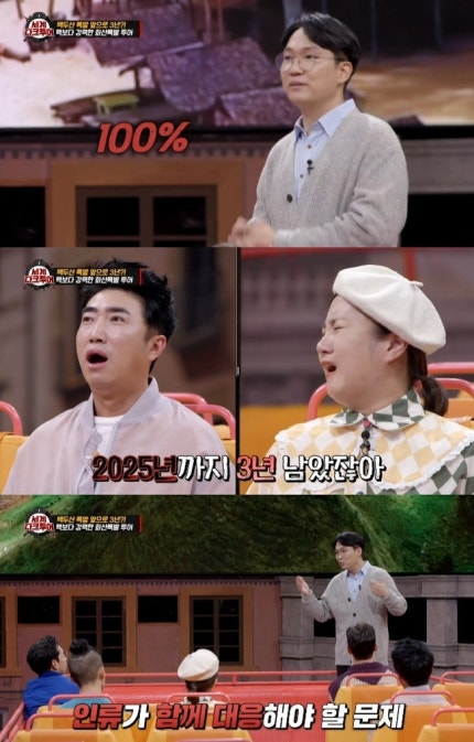 [뉴스엔 이해정 기자] '세계 다크투어'에서 백두산의 화산 폭발 시나리오가 공개됐다.[Reporter Lee Hae-jung on the news] The scenario of the volcanic eruption of Mt. Baekdu was revealed on the World Dark Tour.