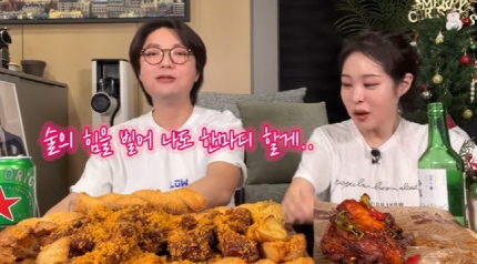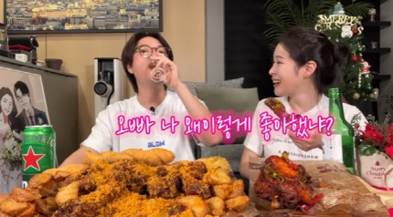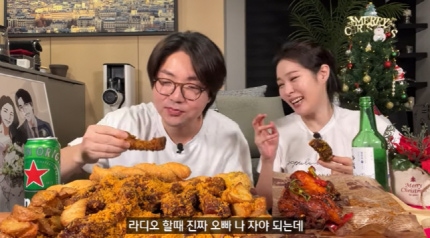 이날 미자와 김태현은 연말 분위기가 물씬 나는 신혼집에서 맛있는 치킨과 술 먹방을 진행했다.On this day, Mizawa Kim Tae-hyun hosted a delicious chicken and alcohol eating show at a honeymoon house with a year-end atmosphere.