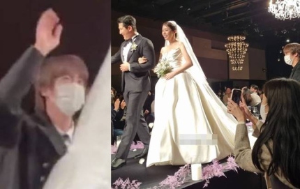 지연과 황재균이 결혼식을 모두 마치고 퇴장하자 진은 버진로드까지 나가 두 사람에게 축하의 꽃잎을 뿌려주기도 했다.When Ji-yeon and Hwang Jae-kyun left after the wedding, Jin even went to Virgin Road and sprinkled petals to congratulate the two.