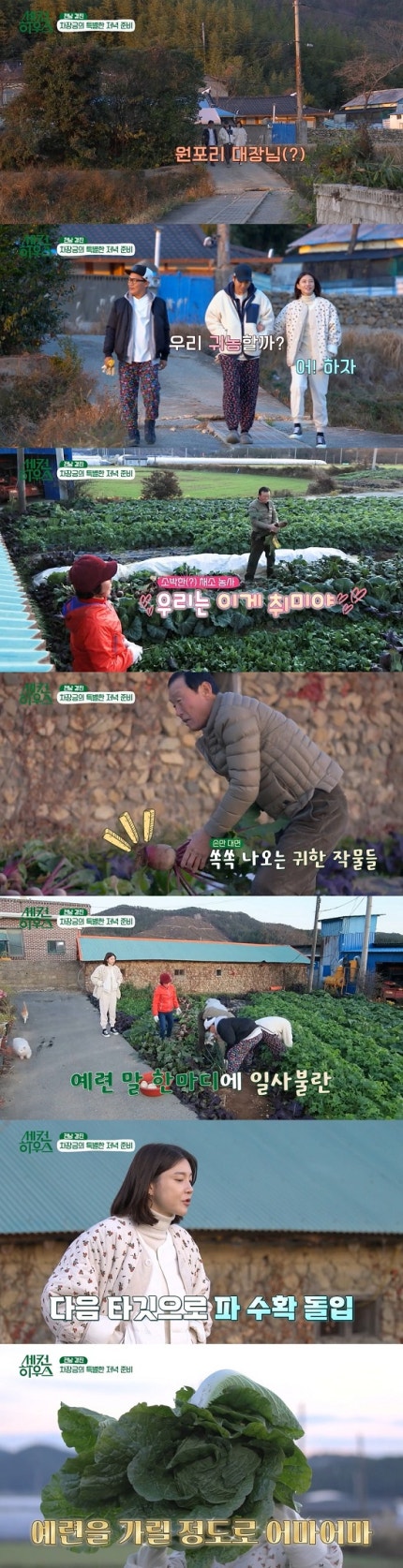 주민들에게 맛있는 소고기 국밥을 대접하기 위해 농작물을 직접 수확하던 세 사람은 싱싱한 채소에 감탄을 금치 못했다.The three people who were harvesting crops themselves to serve delicious beef rice soup to the residents were amazed by the fresh vegetables.