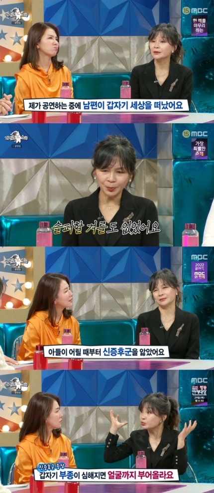 12월 21일 방송된 MBC ‘라디오스타’에서는 배우 길해연이 남편 죽음 후 아들을 홀로 키운 사연을 털어놨다.On MBC's "Radio Star," which aired on December 21, actress Gil Hae-yeon confessed the story of raising her son alone after her husband's death.