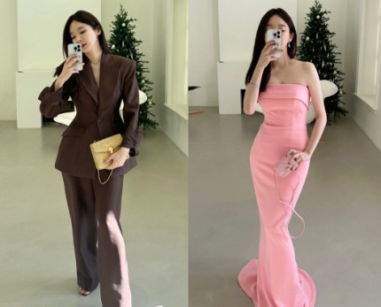 화사한 핑크톤 드레스로 러블리한 비주얼을 자랑한 강민경은 블랙 드레스로 반전 섹시미도 발산했다.Kang Min-kyung, who boasted a lovely visual with a bright pink-tone dress, also showed off her unexpected sexiness with a black dress. 우아한 분위기가 감탄을 자아낸 가운데 강민경은 "어찌나 제 몸에 착붙인지 쏙 마음에 들어서 입어봤다"며 만족감을 드러냈다.Amid admiration for the elegant atmosphere, Kang Min-kyung expressed satisfaction, saying, "I wore it because I liked how it fit my body."