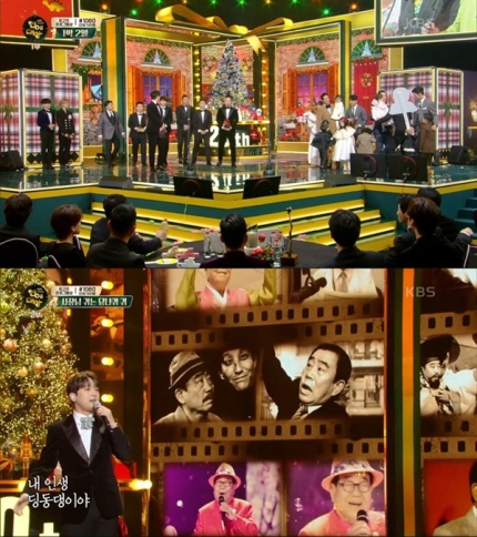 뿐만 아니라 올해 데뷔 20년차를 맞이했고 타사 시상식에선 수년전 최우수상만 두차례 수상했던 개그맨 양세형에게 신인상을 수여한다는 건 그만큼 KBS 예능을 빛낸 "진짜 신인"의 부재를 고스란히 드러낸 대목이었다.In addition, awarding the Rookie of the Year award to comedian Yang Se-hyung, who celebrated his 20th year since his debut and won only the best award twice years ago at other companies' awards ceremonies revealed the absence of a "real rookie" that shone on KBS entertainment. 그나마 올해 세상을 떠난 고 송해 선생(공로상 수상)을 위한 헌정 무대(이찬원 노래)가 없었다면 그저 그런 자화자찬식 행사로 마무리 되었을 듯 싶었다.If it had not been for the tribute stage (Lee Chan-won's song) for the late Song Hae (winning the Achievement Award) who died this year, it would have ended with such a self-praise event.