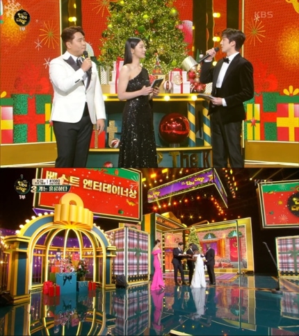 그럼에도 불구하고 이날 거행된 <KBS 연예대상>에선 이웃집 떡돌리듯 트로피가 넘쳐날 정도로 많은 연예인들이 수상자로 이름을 올리고 무대 위에 올라와 소감을 밝히는데 많은 시간을 할애했다.Nevertheless, at the KBS Entertainment Awards held on the same day, many celebrities spent a lot of time raising their names as winners and coming up to the stage to express their feelings as if they were spinning rice cakes from their neighbors. 인기상, 베스트 엔터테이너상 등에선 3명씩 공동 수상이 기본이었고 베스트 커플상에선 무려 4팀 총 8명이 선정되기도 했다.In the Popularity Award and Best Entertainer Award, three people shared awards, and a total of eight people from four teams were selected for the Best Couple Award.