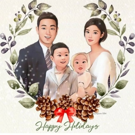 가족 사진은 애플리케이션을 이용해 가족사진을 그림으로 바꾼 것으로 엄마, 아빠를 똑 닮은 두 아들의 얼굴이 눈길을 끈다.Family photos are converted into pictures using an application, and the faces of two sons who resemble their mother and father are eye-catching.