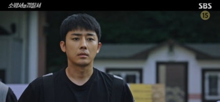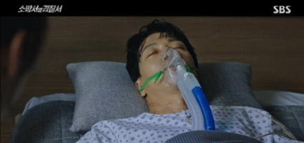 하지만 진호개는 화재로 비상사태가 된 건물의 옥상으로 전력 질주, 막 부상하려는 헬기를 수화전의 엄청난 수압으로 막아 냈다.However, Jinho-gae sprinted to the roof of the building, which was in an emergency due to the fire, and blocked the helicopter that was about to be injured with tremendous water pressure before hydration. 그렇게 엎치락뒤치락하던 끝에 진호개가 수갑을 채우려는 찰나, 마태화는 진호개 복부의 피를 발견하고 광기의 발길질과 목조르기로 악랄함을 내뿜었다.As soon as Jinho-gae was about to handcuff him, Matae-hwa found the blood in Jinho-gae's abdomen and exuded viciousness by kicking and strangling him. 숨 막힘에 몸부림치던 진호개는 가지고 있던 힘을 다 끌어모아 소화전 호수를 작동시켰고, 물 폭탄으로 마태화를 밀어버리며 수갑까지 나눠 채우는 활약을 펼쳤다.Jinho-gae, who struggled with suffocation, pulled all his strength to activate the fire hydrant lake, pushed Matthew with a water bomb, and even handcuffed him. 그렇지만 진호개는 마태화를 잡은 뒤 의식을 잃었고, 심정지까지 오며 생명이 위급해졌다.However, Jinho-gae lost consciousness after catching Matthew, and his life became critical as he reached cardiac arrest. 곧바로 출동한 송설 역시 이송 중 진호개에게 CPR을 계속해 안타까움을 더했다.Song Seol, who was dispatched immediately, also continued CPR on Jin Ho-gae during the transfer, adding to his regret.