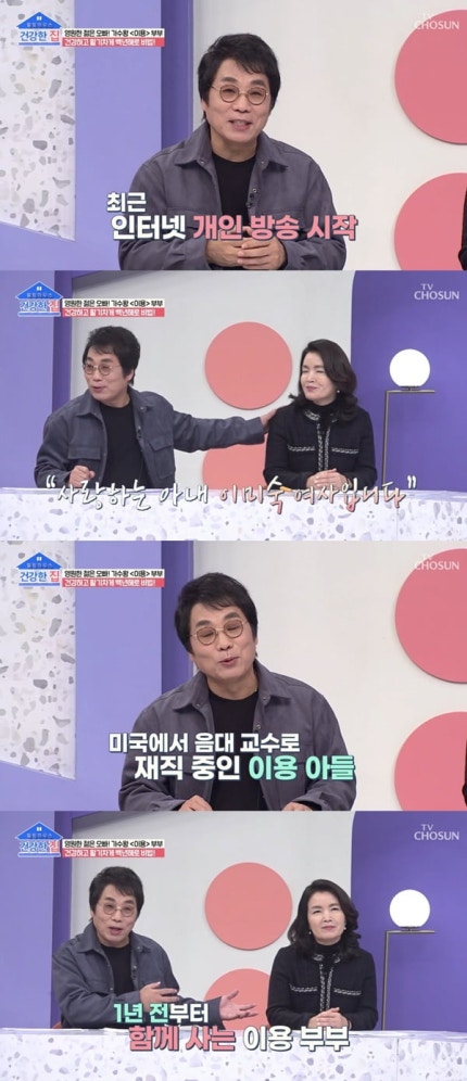 지난 12일 방송된 TV조선 '건강한 집'에서는 가수 이용과 그의 아내 이미숙이 출연했다.Singer Lee Yong and his wife Lee Mi-sook appeared in TV Chosun's Healthy House, which aired on the 12th.