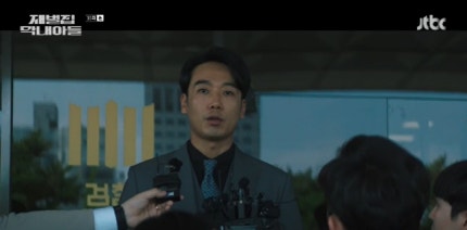 검찰의 마수가 순양으로 거듭 다가오자 진영기는 진성준에게 검찰의 포토라인에 서라고 지시했고, 진성준은 충격을 받았다.As the prosecution's takeover repeatedly approached cruising, Jin Young-ki instructed Jin Sung-joon to stand on the prosecution's photo line, and Jin Sung-joon was shocked. 모현민(박지현 분)은 남편 진성준에게 자식을 잡아먹는 크로노스의 그림을 보여줬고, 진성준은 검찰에 출석하며 “불법 자금조성의 책임은 진영기 부회장, 제 아버지께 있다”라며 아버지를 사지에 밀어넣었다.Mo Hyun-min (Park Ji-hyun) showed her husband Jin Sung-joon a picture of Kronos eating his children, and Jin Sung-joon attended the prosecution and pushed his father into his limbs, saying, "Vice Chairman Jin Young-ki and my father are responsible for illegal financing."