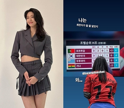 [마이데일리 = 이승록 기자] 걸그룹 AOA 출신 설현(본명 김설현·27)이 2022 카타르월드컵 포르투갈전 결승골의 주인공 황희찬(26·울버햄튼 원더러스)을 향한 응원 메시지를 보냈다.[My Daily = Reporter Lee Seung-rok] Seol-hyun (real name Kim Seol-hyun, 27) from girl group AOA sent a message of support to Hwang Hee-chan (26, Wolverhampton Wanderers), the hero of the 2022 Qatar World Cup against Portugal.