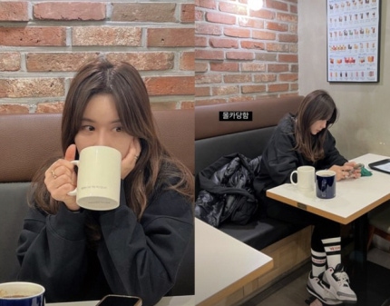 12일 김준희는 "몰카 당함"이라며 카페 한 구석에서 휴대폰을 만지작 거렸다.On the 12th, Kim Joon-hee fiddled with her cell phone in a corner of the cafe, saying, "I was pranked."