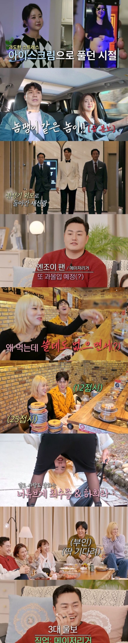 한편 '엔조이커플' 임라라&손민수는 회전 초밥집에서 데이트를 즐겼다.Meanwhile, "Enjoy Couple" Im Lara & Son Min-soo enjoyed dating at a sushi restaurant. 손민수가 "자기야, 나 장어 먹는다?"라며 지속적으로 어필을 하는 가운데, 임라라는 "장어를 왜 먹는데?While Son Min-soo continued to appeal, "Honey, I'm eating eel," Im Lara said, "Why are you eating eel?" 쓸데도 없으면서…It's useless..."라며 9년차 커플다운 화끈한 농담을 주고받았다."We exchanged hot jokes like a nine-year-old couple. 그리고 '먹방요정'이라는 타이틀을 가지고 있는 임라라는 명성에 맞게 7분 동안 무려 12접시를 먹는 폭발적인 먹성을 보여줬다.And Imra, who has the title of "Eating Fairy," showed an explosive appetite of eating as many as 12 plates in 7 minutes. 손민수는 임라라에게 애교를 부리며 연신 초밥접시를 건넸고, 임라라는 25접시로 먹방을 마무리했다.Son Min-soo acted cute to Lim Lala and handed her a series of sushi plates, and Lim Lala finished her eating show with 25 plates.