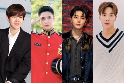 ▲ (왼쪽부터)엑소 백현, 샤이니 태민, 데이식스 영케이, 몬스타엑스 셔누.▲ (From left) EXO Baekhyun, SHINee Taemin, DAY6 Young K, MONSTA X Shownu. 제공|각 소속사, 병무청 인스타그램Offering | Military Manpower Administration Instagram