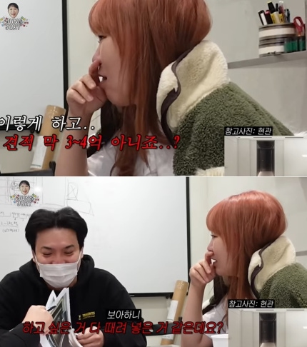 이에 정주리는 계산기로 금액을 계산했고 평당 250만원으로 계산을 하며 1억1000만원 이라는 액수가 나오자 다소 부담스럽다는 표정을 지었다.In response, Jeong Ju-ri calculated the amount with a calculator and calculated it at 2.5 million won per pyeong, and looked somewhat burdened when the amount came out to be 110 million won.