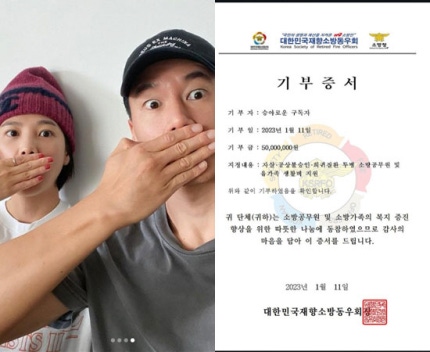 윤승아는 "우리는 많은 분들의 도움으로 따뜻하게 살아가고 있습니다.Yoon Seung-ah said, "We are living warmly with the help of many people. 늘 감사함을 느끼고 저도 어떻게 하면 도움이 될지 고민하다가 몇년 전부터 소방공무원 분들에 대해 많은 생각을 하게 되었다"면서 "기후변화에 따른 자연 재해, 화재 현장이나 재난 현장에 가장 밀접하게 노출 되기 때문에 늘 최전선에서 활동하시는 모습이 큰 울림과 감사함으로 다가왔다.I always felt grateful and thought about how to help firefighters from a few years ago," he said adding, "He always works at the front line because he is most closely exposed to natural disasters, fire sites, or disaster sites caused by climate change. 그분들께 마음을 전할 방법을 찾다가 기관 특성상 직접 기부가 불가능하다는 것을 알게 됐다.While looking for a way to convey their feelings to them, they found that direct donations were impossible due to the nature of the institution. 기부 사각지대에 놓인 분들께 마음을 보탤 방법을 찾아보니 다행히 길이 있었고 신중히 알아본 뒤 이 기부금을 전달했다.Fortunately, there was a way to help those in the blind spot of donation, and after careful investigation, the donation was delivered. 늘 감사합니다"라고 이야기했다.Thank you always."