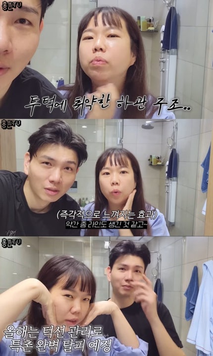 또 홍현희는 "실제로 만나면 제 얼굴 작다는 이야기를 정말 많이 듣는다.Also, Hong Hyun-hee said, "When I actually meet them, I hear a lot that my face is small. 턱살 부분에 받아봤는데 라인이 생겼다"며 만족스러운 마음을 내비치기도 했다."I got a line on my chin," he said, expressing his satisfaction.