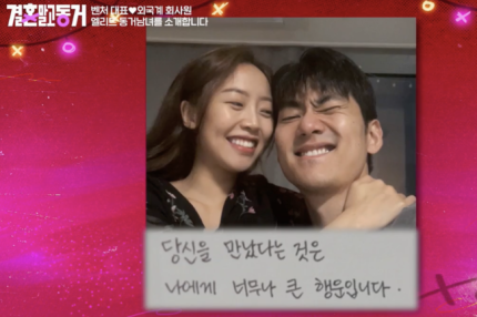 계속해서 동거 모니터가 그려졌다.Continuing on, a living together monitor was drawn. 결혼 5년차 커플이 방문한 모습.A couple who have been married for five years have visited. 두 커플은 서로 러브스토리에 대해 물었다.The two couples asked each other about their love story. 동거녀는 “몸은 내가 대시, 마음은 오빠가 대시했다My roommate said, "My body is the dash, my heart is the dash." 재택근무로 같이 일 할 때, 집에가야하나 생각하는데 그냥 가라고 해 다시 전화해서 진짜 가냐고 물으니 술 한잔하자 했고 다시 유턴해서 갔다”고 말했다."When I was working together from home, I thought I should go home, but I just called him again and asked him if he was really going, so he said let's have a drink, and I made a U-turn and went again."