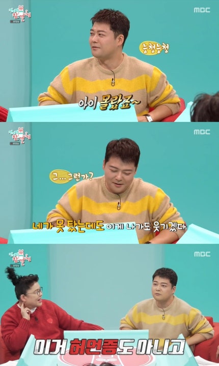홍현희는 "수상 소감을 들어보고 싶다"고 했는데, 송은이는 "네가 못 탔는데 이게 나가도 웃기겠다.Hong Hyun-hee said, "I want to hear your acceptance speech," and Song Eun-yi said, "It would be funny if you went out because you couldn't ride it. 김칫국 퍼레이드로 나가도 웃기지 않나"라고 말했다.Wouldn't it be funny to go out on a parade?" 여기에 이영자는 "첫 번째 (대상) 탄 거랑 두 번째 탄 거랑 다르지 않나"라고 거들어 전현무를 당황케 했다.On top of that, Lee Young-ja helped Jeon Hyun-moo by saying, "Isn't the first (grand prize) ride different from the second ride?"