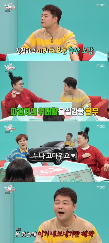 그러자 이영자는 "그렇다고 그걸 사주면 어떡하냐.Then Lee Young-ja said, "Why did you buy it for me? 차를 또 하나"라고 했고, 송은이는 M사 차량을 언급하면서 전현무를 놀렸다.Another car," said Song Eun-yi, making fun of Jeon Hyun-moo, referring to M's car.