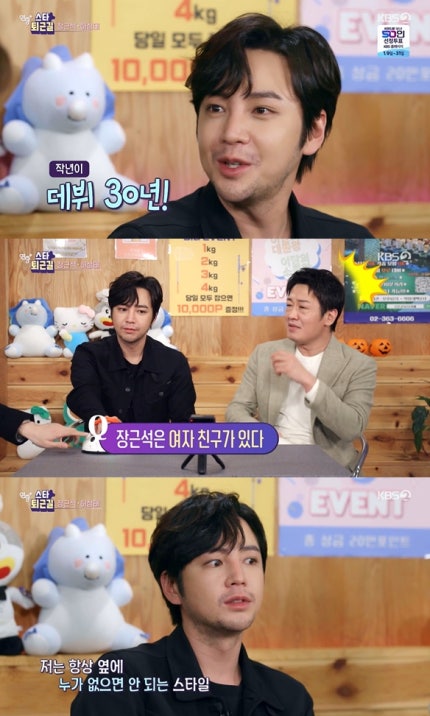 장근석은 "저는 항상 옆에 누가 없으면 안 되는 스타일이다.Jang Geun-seok said, "I always have to have someone next to me. 연애를 할 때"라면서도 "장어(팬덤명)분들이라고, 저희 팬분들과 30년 동안 연애를 하고 있다"고 너스레를 떨었다.When I was in a relationship, I said, "They are eel (fandom name), and I have been dating our fans for 30 years."