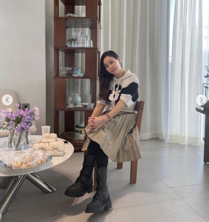 고소영은 평범한 니트에 언밸런스 스커트에 부츠로 힙한 분위기를 자아냈다.Ko So-young created a hip atmosphere with an ordinary knitwear, an unbalanced skirt, and boots.