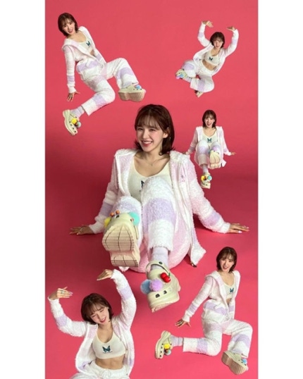 레드벨벳 웬디는 13일 다채로운 이모티콘만 여럿 남긴 채 사진을 공유했다.On the 13th, Wendy of Red Velvet shared photos with only a number of colorful emoticons. 붉은색 배경에서 찍은 사진들이다.These photos were taken against a red background. 허리라인을 드러낸 크롭티 위에 파스텔톤의 보라색 무늬가 새겨진 재킷과 바지를 입고 웬디가 특유의 발랄한 포즈를 취하고 있다.Wendy poses in her unique cheerful pose in a pastel-toned purple jacket and pants over a cropped tee that reveals her waistline.
