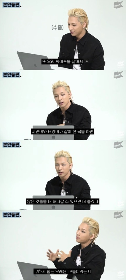16일 유튜브 채널 '원더케이 오리지널'에는 '태양(TAEYANG)과 지민(Jimin)의 세계관 충돌이 가능했던 진짜 이유?'라는 제목의 영상이 게재됐다.On the 16th, a video titled "The real reason why TAEYANG and Jimin were able to collide in the worldview?" was posted on the YouTube channel "Wonder K Original." 영상에서 태양은 프로필에 '173cm, 58kg'이라고 적혀있자, "신체의 정확한 수치는 노코멘트 하겠다"라고 해 웃음을 자아냈다.In the video, when the profile said 173cm, 58kg, the sun drew laughter by saying, "I will not comment on the exact body figure."