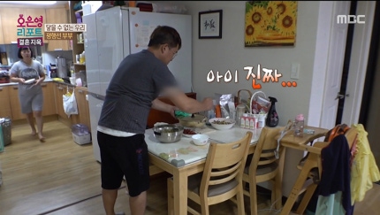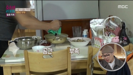 그런데 귀가 후 아내가 딸의 밥만 요리하자 불만을 표출했다.However, after returning home, when his wife cooked only his daughter's rice, he expressed dissatisfaction. 이에 아내는 딸의 밥을 먹인 뒤에 밥을 하겠다고 하지만 남편은 딸은 언제 재울 거냐고 하며 직접 요리했다.The wife said she would cook after feeding her daughter, but the husband asked her when she would put her to sleep. 고기를 볶으며 찌개를 데우고, 파채를 무치던 남편은 아내가 화구가 2개인데 화구 1개만을 사용하며 딸의 고기만 구운 것에 대해 답답함을 표했다.The husband, who heated the stew while stir-frying the meat and seasoned scallions, expressed frustration that his wife had two crater, but only used one crater, and baked only her daughter's meat. 식사 준비를 마치고 식탁에 찌개를 옮기는 과정에서 남편은 또 한 번 불만을 표했다.In the process of moving the stew to the table after preparing the meal, the husband once again complained. 아내가 옮겨놓은 접시의 위치가 마음에 들지 않은 것.I didn't like the location of the plates my wife moved. 찌개 냄비가 들어가기엔 턱없이 부족한 공간에 남편은 “찌개 놓은 것 뻔히 알면서.In a space that was far short of a pot of stew, my husband said, "You know I put the stew. 안 도와줄 거면 건들지를 말던가”라고 했고, 아내는 “뭐가 불만인데."If you're not going to help me, don't touch me," she said. "What's the problem?" 난 아무것도 안 했는데”라고 한다.I didn't do anything," he said.
