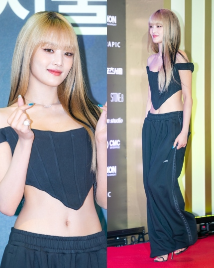 김성현 기자 : 트레이닝복을 미처 갈아입지 못한 것일까?Reporter Kim Sung-hyun: Didn't I change my tracksuit? 연습실에서 급하게 달려온 것 같은 룩이다.It looks like she ran from the practice room in a hurry. 바지만 다른 아이템을 선택했어도 워스트에 꼽히지는 않았을 것 같은데…I don't think it would have been the worst if I had chosen a different pair of pants...
