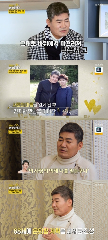 21일 방송된 KBS 2TV '박원숙의 같이 삽시다'(이하 '같이삽시다')에서는 트로트 가수 진성이 49세의 나이에 지금의 아내를 만나 결혼하게 된 사연을 고백했다.On KBS 2TV's "Let's Live Together" (hereinafter referred to as "Let's Live Together"), which aired on the 21st, trot singer Jin-sung confessed the story of meeting his current wife at the age of 49.