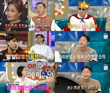 베트남은 여전히 박항서 앓이 중이라는 말에 그는 “인기투표를 했다는 말도 들렸다”라고 말했고 안영미는 “BTS랑 인기투표해서 이기셨다”라고 말했다.When he heard that Vietnam was still suffering from Park Hang-seo, he said, "I heard that I had a popularity vote," and Ahn Young-mi said, "I won the popularity vote with BTS."
