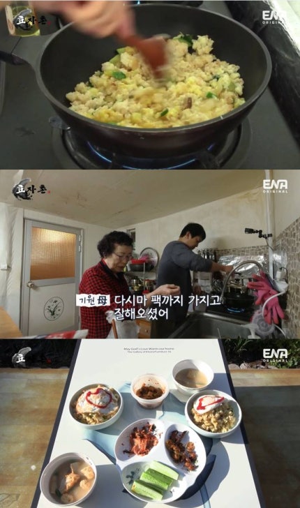 이날 방송에서는 어머니를 위해 금세 밥상을 차리는 윤기원의 모습이 눈길을 끌었다.In the broadcast on this day, Yoon Ki-won's quick setting up of a table for his mother drew attention.