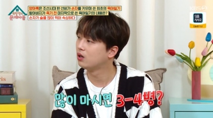 이어 이찬원은 연예계 주당임을 인정했다.Lee Chan-won then acknowledged that he is a stockholder in the entertainment industry. 그는 별명이 '술또배기'라며 "스케줄 없는 날은 술을 100% 마신다.He said his nickname is "Drunken drinker," adding, "On days without schedules, he drinks 100% alcohol. 없는 날은 안 먹는다.I don't eat when I'm not around. 주량이 3~4병"이라고 했다.I can drink three to four bottles."