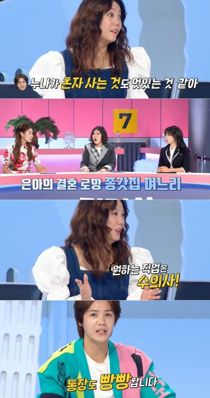 특히 다이빙에 성공한 고은아는 "결혼이 정말 하고 싶었다"며 "올해 들어 동생 미르가 내게 '누나, 가만히 생각해보니까 누나가 혼자 사는 것도 멋있는 거 같아'라고 하더라.In particular, Ko Eun-ah, who succeeded in diving, said, "I really wanted to get married," and her younger brother Mir told me this year, "Sister, I think it's cool for you to live alone." 어느 순간부터 가족들이 내가 결혼을 하지 못할 거라 생각하더라"고 말했다.At some point, my family thought I couldn't get married."