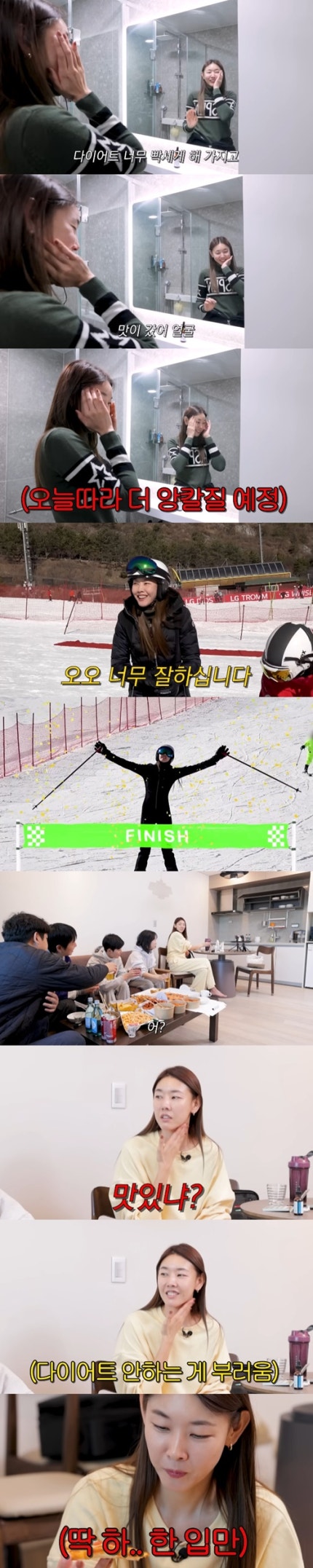 스키장에 도착한 한혜진은 스키를 신고 벗는 것조차 서툰 초보였다.Han Hye-jin, who arrived at the ski resort, was a beginner who was not even good at wearing and taking off her skis. 강사에게 걸음마부터 배운 한혜진은 빠른 시간 안에 기초 단계를 마스터했다.Han Hye-jin, who learned from her toddler, mastered the basic steps in a short time.