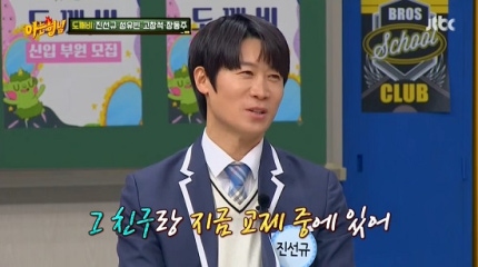 이미 배우 박보경과 결혼을 한 진선규의 대답에 고창석은 혼란을 느끼며 "이거 어떻게 해야하는 거냐"라고 되물었다.In response to Jin Sun-kyu, who had already married actor Park Bo-kyung, Ko Chang-seok felt confused and asked back, "What should I do?" 진선규는 "교복을 입어서 콘셉트다"라고 답했다.Jin Sun-kyu replied, "It's a concept because I'm wearing a school uniform."