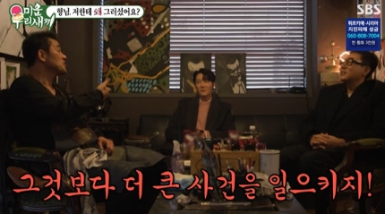 이어 최진혁은 한우와 참기름 선물, 이상민은 "만약 같은 날 진혁이 군대가고 내가 기자회견 간다면?Choi Jinhyuk said, "What if Jinhyuk goes to the army and I go to the press conference on the same day?""이라 묻자 최민수는 "기자회견보다 더 큰 사건 일으킬 것, 널 오게 만들겠다"며 최민수다운 답변으로 웃음의 쐐기를 박았다.When asked, Choi Min-soo said, "I will cause a bigger incident than the press conference, and I will make you come," adding, "I will wedge my laughter with Choi Min-soo's answer.