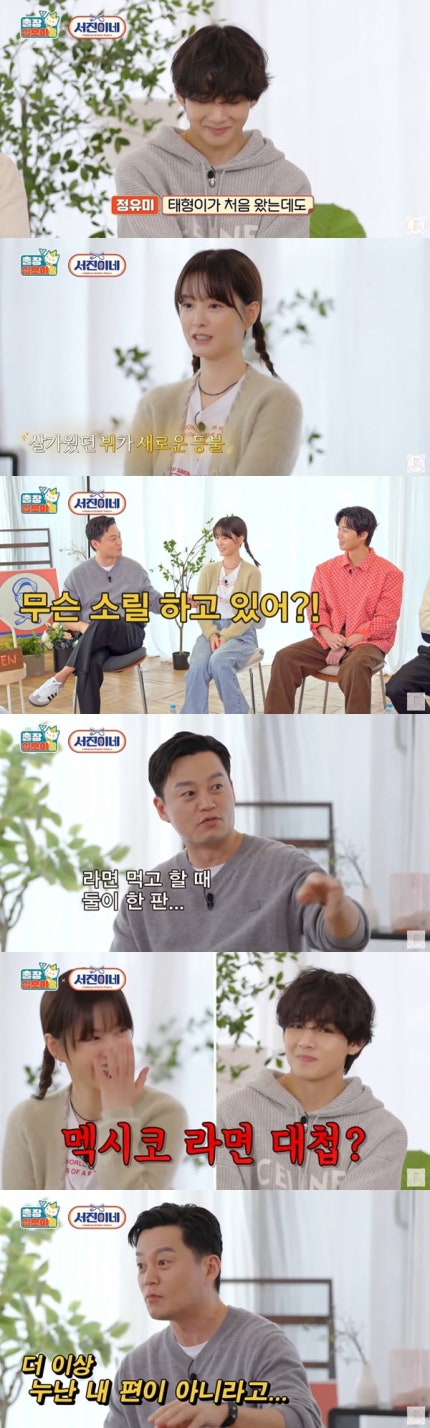 이서진은 "무슨 소리야.Lee Seo-jin said, "What are you talking about? 밤에 늦게 라면 먹을 때 대차게 싸웠다.We had a big fight when we ate ramen late at night. 태형이가 제일 심하게 화를 냈어.Taehyung got the most angry. 더이상 누난 내 편이 아니라고 소리 지르고 난리가 났는데 무슨 소리를 하냐?"라고 밝혔다.What are you talking about when you're no longer on my side?" 뷔는 "저녁을 먹은 이후에 유미 누나랑 같이 라면을 먹자고 됐다.V said, "After dinner, I decided to eat ramen with Yumi. 서준이 형이 세개를 끓여줬다.Seojun cooked three for me. 한 젓가락 먹고 배부르다고"라고 설명했다.I'm full after a bite." 이서진은 "거기서 태형이가 이 누나 정말 이럴거냐고 했다.Lee Seo-jin said, "There, Taehyung asked if this sister would really be like this." 태형이가 결국 두개를 먹었다"고 말했다.Taehyung ended up eating two." 뷔가 밤마다 라면을 먹은 이유는 고돼서였다.The reason why V ate ramen every night was because of the exhaustion.
