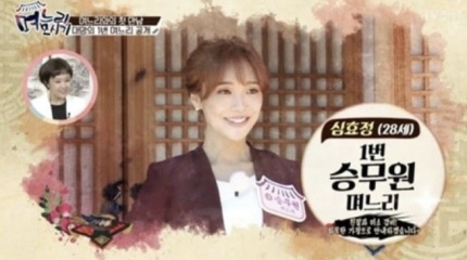 또 2017년 TV조선 '며느리 모시기'에 나왔다는 이야기도 퍼졌다.In addition, rumors spread that she appeared on TV Chosun's "House Your Daughter-in-law" in 2017. 자신을 승무원 며느리라고 소개한 이 여성은 사진작가 시어머니의 선택을 받은 바 있다.The woman, who introduced herself as a flight attendant daughter-in-law, was chosen by her mother-in-law.