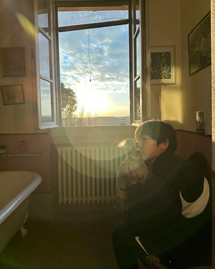 이날 공개된 사진 속 송중기는 따스하게 햇빛이 들어오는 욕실에서 반려견에게 입을 맞추며 다정한 면모를 과시하고 있다.In the photo released that day, Song Joong-ki is showing off his friendly side by kissing his dog in the warm sunlight bathroom. 여기에 드넓은 들판이 펼쳐진 풍경 사진이 더해져 궁금증을 고조시켰다.On top of that, a picture of the landscape with a wide field was added, raising curiosity.