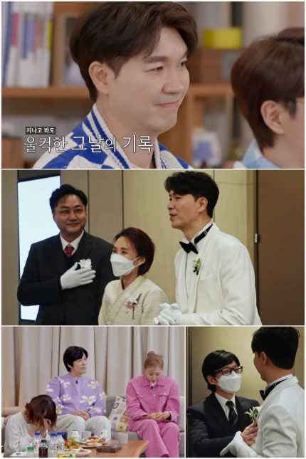 20일 방송되는 TV조선 '조선의 사랑꾼'에서는 박수홍이 '사랑꾼즈' MC들과 함께 자신의 결혼식 VCR을 지켜본다.In TV Chosun's "Joseon's Lovers," which will air on the 20th, Park Soo-hong watches his wedding VCR with the MCs of "Lovers." 이날 결혼식 직전, 가장 분주했던 이들은 박수홍의 가족 대신 '혼주' 역할을 자처한 절친들이었다.Just before the wedding, the busiest people were best friends who volunteered to play the role of "alone" instead of Park Soo-hong's family. 개량한복을 곱게 차려입은 박경림은 "저는 동생이니까..."라며 가족과 다름없는 박수홍에 대한 애정을 과시했고, 김국진 역시 비어 있는 혼주 자리를 어김없이 채워줬다.Park Kyung-rim, dressed up in modernized hanbok, showed off her affection for Park Soo-hong, just like her family, saying, "Because I'm her younger brother..." and Kim Kook-jin also filled the empty solo spot. 이어 김수용도 "나도 손님맞이를 하겠다"며 혼주 역할에 합류했고, 가수 이수영 역시 함께했다.Kim Soo-yong also joined the role of soloist, saying, "I will greet guests," and singer Lee Soo-young also joined. 자신이 바쁜 사이 깊은 배려를 해준 이들의 모습을 바라본 박수홍은 조용히 눈시울을 붉혔고, 하객으로 온 유재석이 김국진을 보고는 "형이 여기서 하객 맞이 하는 거야?"라고 놀라는 장면도 포착됐다.Park Soo-hong, who looked at the people who gave him deep consideration while he was busy, quietly blushed, and Yoo Jae-seok, who came as a guest, was also seen surprised to see Kim Kook-jin, saying, "Are you welcoming guests here?" 지석진도 "이렇게 다들 도와주는구나"라며 감동해, 현장의 훈훈함을 더했다.Ji Seok-jin was also moved, saying, "Everyone is helping like this," adding to the warmth of the scene.
