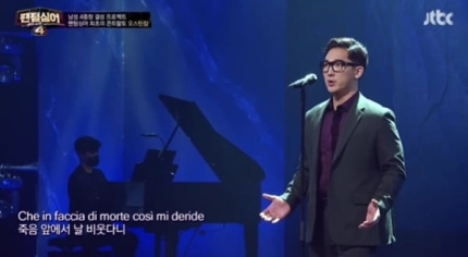 콘트랄토 카운터테너 오스틴킴의 존재감도 막강했다.Contralto countertenor Austin Kim also had a strong presence. 콘트랄토라는 생소한 성부를 무대로 증명하겠다는 오스틴킴의 자신감은 남달랐다.Austin Kim's confidence in proving his unfamiliar voice, Contralto, was extraordinary. 그는 소름 돋는 고음과 저음을 자유자재로 구사하며 콘트랄토의 매력을 마음껏 드러냈다.He showed off Contralto's charm by freely using his creepy high and low notes. 무대가 끝난 후 오스틴킴은 이동규에 대한 존경심을 드러내며 "같은 무대에 선다는 자체가 굉장히 영광스럽다"고 전해 감동을 더했다.After the stage, Austin Kim expressed respect for Lee Dong-kyu and added, "It is a great honor to be on the same stage."