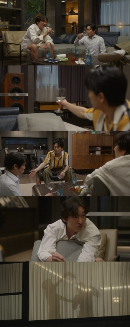 이때 초인종이 눌렸다.At this time, the doorbell rang. 이에 이웃의 항의인 줄 알고 "사람들 진짜 예민하네"라고 투덜거리며 인터폰을 확인한 신성한은 친구 장형근(김성균 분), 조정식(정문성 분) 얼굴을 확인하곤 "징글징글한 새X들"이라고 나직하게 욕을 하면서도 문을 열어줬다.In response, Shin Sung-eun, who grumbled and checked the intercom, saying, "People are really sensitive," checked the faces of her friends Jang Hyung-geun (Kim Sung-kyun) and Cho Jung-sik (Jung Moon-sung) and opened the door quietly cursing, saying, "Jing new people."