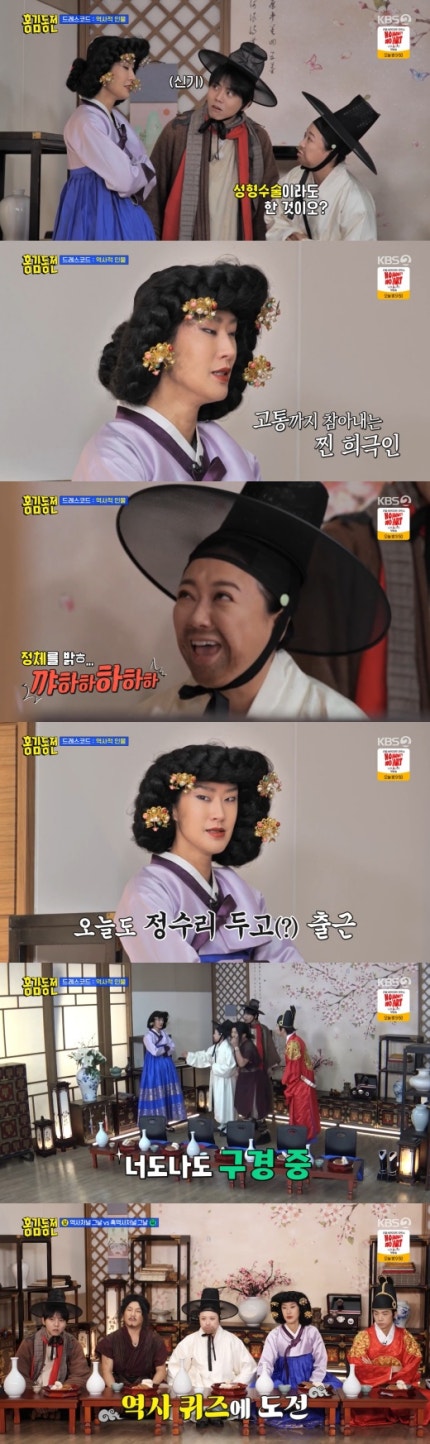 23일 오후 방송된 KBS 2TV '홍김동전'에서는 '역사적 인물'을 드레스코드로 맞춰 입고 온 출연진의 모습이 그려졌다.KBS 2TV's "Hong Kim Dong-jeon," which aired on the afternoon of the 23rd, depicts the cast members wearing "historical figures" as dress codes.
