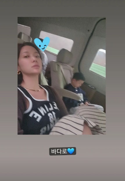 사진에서 황정음은 "바다로"라며 가족 여행을 암시하는 모습이었다.In the photo, Hwang Jung-eum was seen suggesting a family trip, saying, "To the sea."