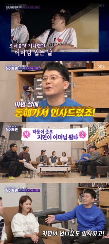 김준호는 고정출연 중인 SBS ‘돌싱포맨’에서 수없이 김지민과의 결혼을 언급했다.Kim Joon-ho mentioned marriage to Kim Ji-min countless times on SBS's "Dolling For Man," which is starring as a regular. 멤버들이 “(김지민과 관계가) 확실하지 않는거 아니냐”고 묻자 김준호는 “내년에 어떻게 해봐야죠”라고 결혼 의사를 은근히 내비쳤다.When the members asked, "Isn't it (the relationship with Kim Jimin) not clear?" Kim Joon-ho secretly expressed his intention to marry, saying, "What should I do next year?"