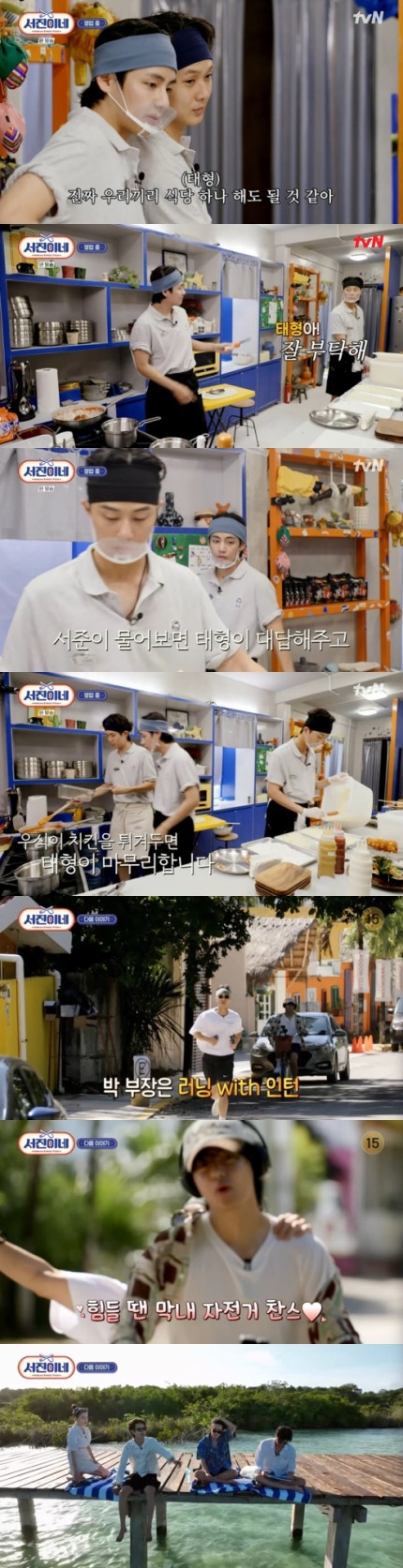 최우식과 뷔는 "조금만 더 하면 우리끼리 레스토랑 하나 해도 되겠다", "진짜 우리끼리 식당 하나 해도 될 것 같다.Choi Woo-sik and V said, "We can open a restaurant by ourselves if we do a little more," and "We really can open a restaurant by ourselves." 서진이형 설거지 시키고"라며 너스레를 떨었다.I made Seo-jin wash the dishes."